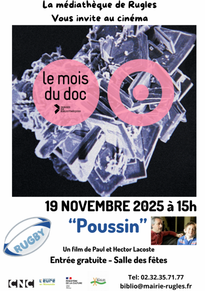 Rdv vous mercredi 19 novembre à 15h à la salle des fêtes de Rugles pour la projection du film de Paul Lacoste "Poussin".